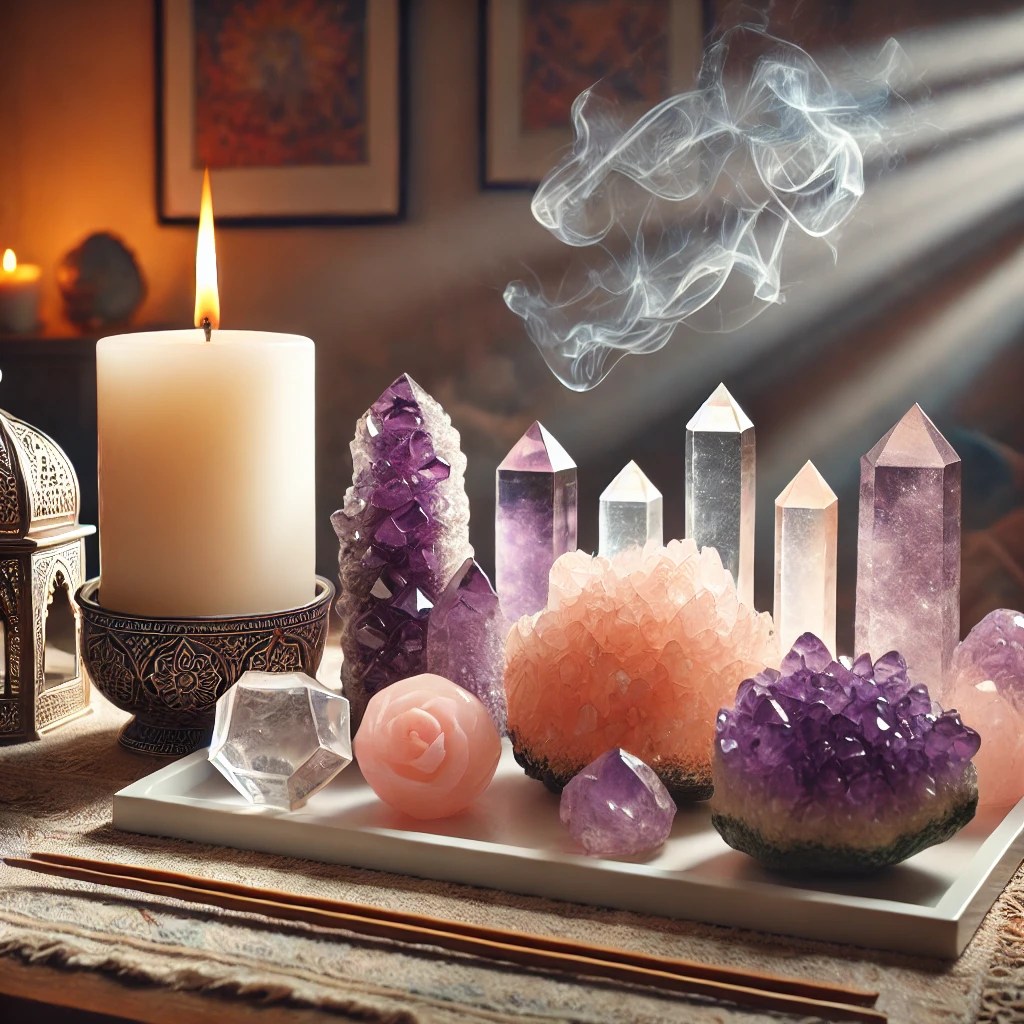 Before starting, take a moment to reflect on what you want to achieve with your ritual. Do you seek stress relief, enhanced focus, better sleep, or simply a moment of peace? Your intention will guide your choice of crystals and incense.