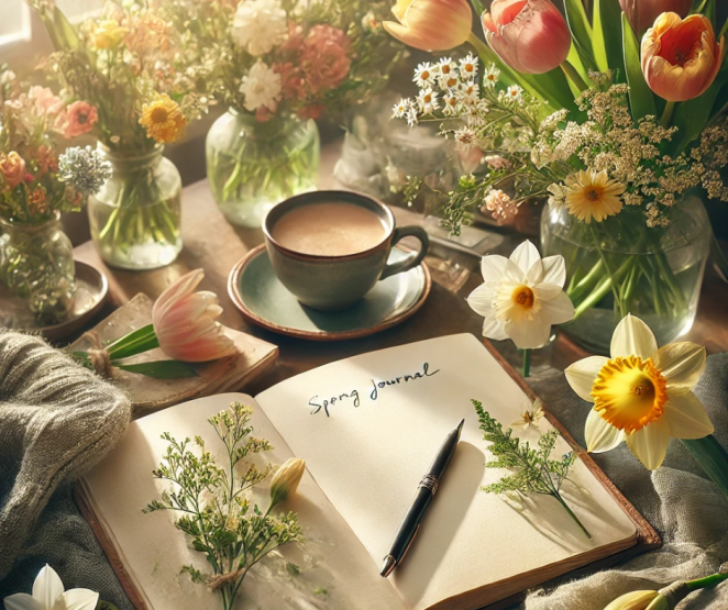 Once you’ve gathered your thoughts, grab a journal and a pen, and start writing. Let the words flow freely, without judgment. You might write about cultivating patience, taking more time to enjoy the simple pleasures, or embracing self-care with the same softness you would offer a blooming flower. As you write, imagine these intentions taking root, growing slowly and steadily as the flowers outside begin to bloom.