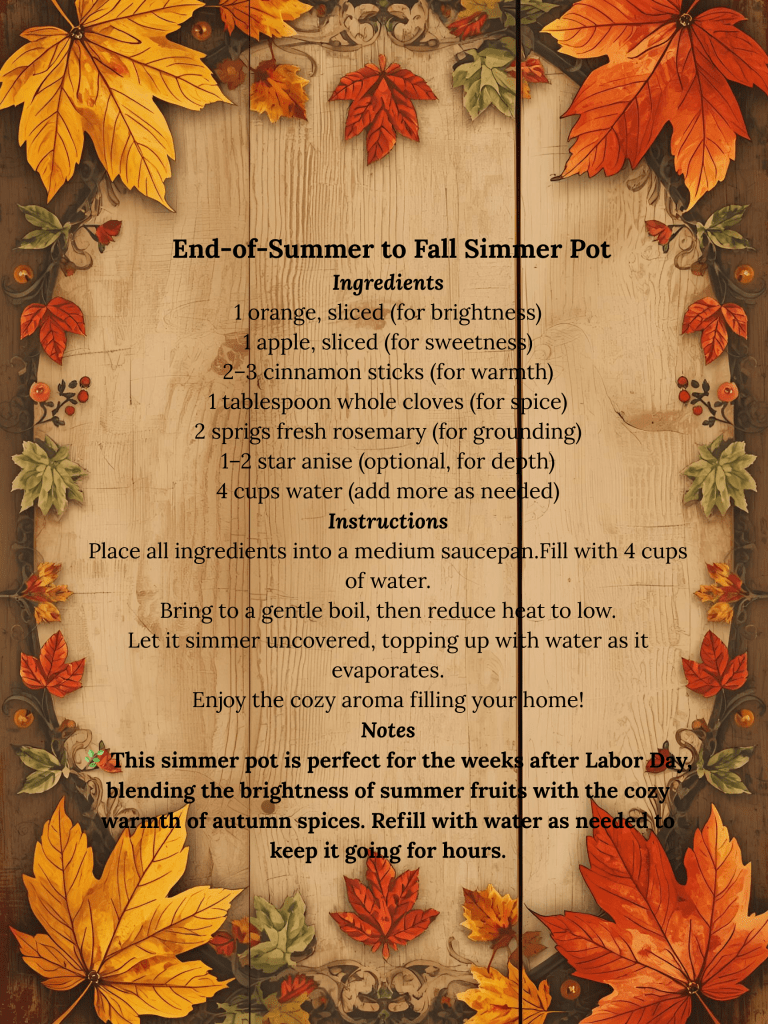 The days after Labor Day can feel bittersweet. Summer’s brightness lingers in memory, while fall whispers its promise of warmth, reflection, and cozy gatherings. By creating rituals—through scent, food, nature, and rest—you honor the season that’s ending and invite the new one with open arms.